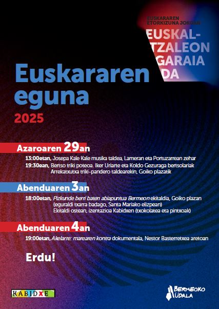 Bermeoko Udalak, AEK eta Gotzon Garitaonaindia euskaltegiek urtero elkarlanean antolatzen dituzten guraso eta etorkinei zuzendutako euskara ikastaroetan izena emateko ep ...